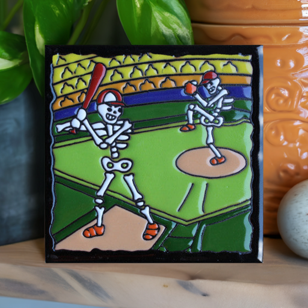 Feel the (quirky) spirit of the stadium wherever you go when you display this unique “Baseball Time Day Of The Dead” clay tile! Put a spark of fun back in your home collection with a one-of-a-kind reminder that’s sure to take you “out to the ball game” in style!