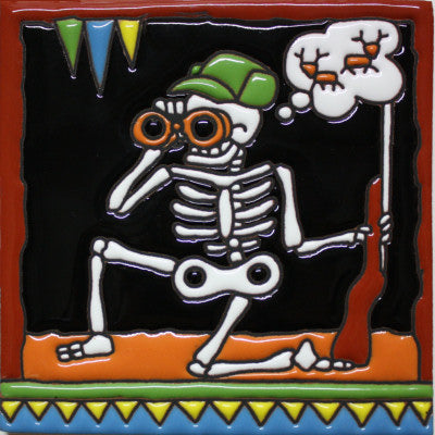 A 6 inch hand-painted Tile. It is time to get your hunting gear and get outdoors! Don't forget your hunting license. This tile is raised and hand-painted. This is a colorful tile celebrating the day of the dead. Traditionally in the Mexican culture people go to graveyards on the day of the dead (November 2nd), place food and meet at the place where their dead relatives rest.Share